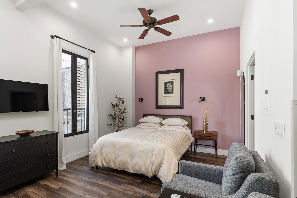 Our rooms blend 19th century architecture with modern essentials. Each is tastefully outfitted with a mix of industrial and contemporary styled furnishings. All are outfitted with kitchen and cooking essentials. Samsung SMART TV and DIRECTV 100+ channels are standard in every room.